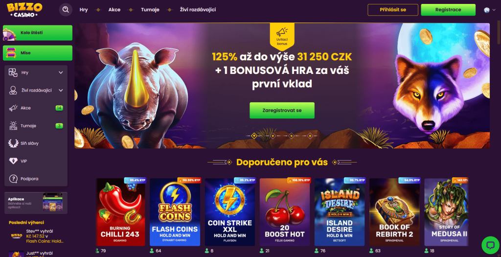 Když jsem poprvé navštívil Bizzo Casino, okamžitě mě zaujal jeho svěží, animovaný design. Celé rozhraní je laděno do elegantní fialové barvy a navigace je natolik intuitivní, že jsem se v sekcích automatů a turnajů zorientoval během několika sekund. Moje nejlepší online casino recenze na tento web se nese v pozitivním duchu především díky jejich přístupu ke gamifikaci. Bizzo totiž není jen o točení válců, ale i o plnění misí a postupu v propracovaném VIP klubu.