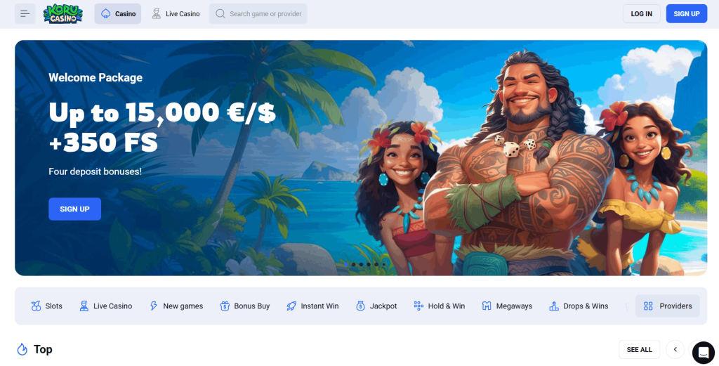 Koru Casino mě okamžitě přeneslo na tropický ostrov. Maorské symboly a polynéské téma jsou velmi vkusně zapracovány do celého webu. Toto nejlepsi online kasino se pyšní obrovským uvítacím balíčkem, který dosahuje až závratných 15 000 €. I když jsem netestoval vklad v takové výši, ocenil jsem, že i menší vklady aktivují zajímavé bonusy.
