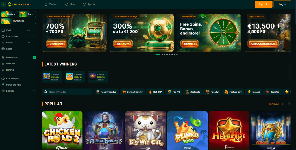 Pokud preferujete pocit luxusu a zlaté akcenty, Lucky Gem vás nezklame. Toto kasino se zaměřuje na eleganci a vysoké bonusy. Moje zkušenost ukazuje, že je to nejlepší casino online pro milovníky automatů, kteří hledají vysoké procentuální navýšení vkladu. 300% uvítací balíček je v dnešní době skutečně nadstandardní.