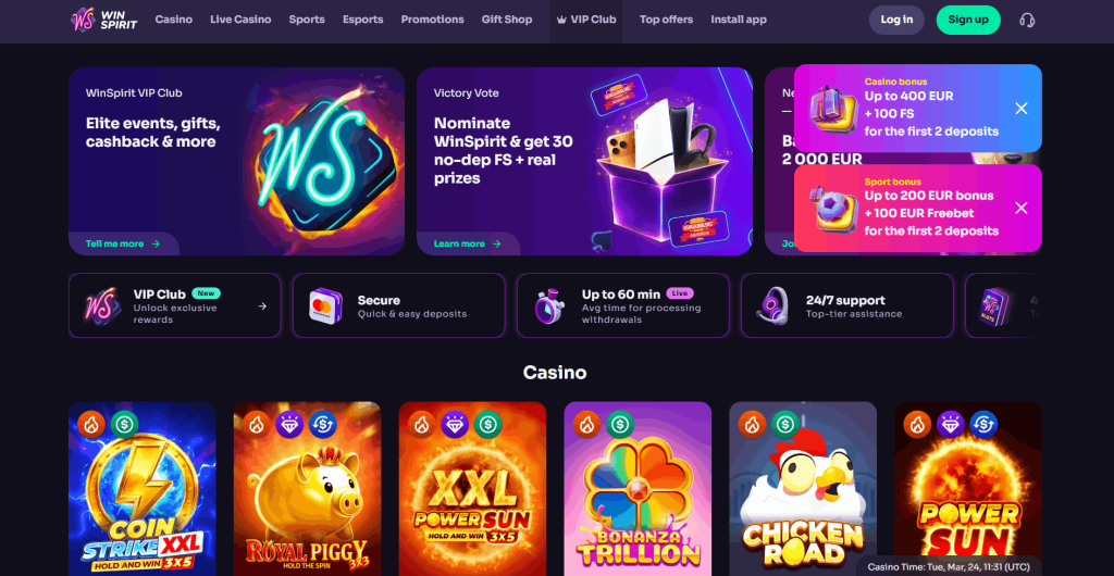 WinSpirit na mě zapůsobil svou moderní estetikou. Neonové barvy a tmavé pozadí vytvářejí atmosféru nočního Las Vegas přímo na vašem monitoru. Při testování jsem si všiml, že toto nejlepsi online casino klade velký důraz na bezpečnost a transparentnost, což podtrhuje jejich licence z Curacaa.